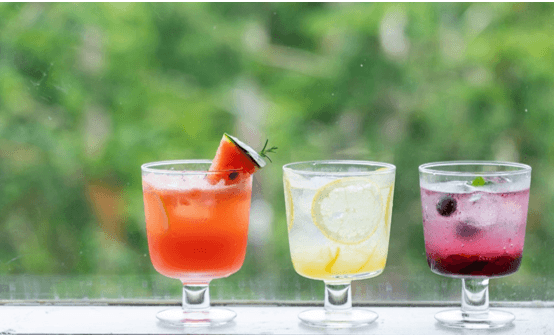 左からスイカスカッシュ・レモンスカッシュ・ブルーベリースカッシュ