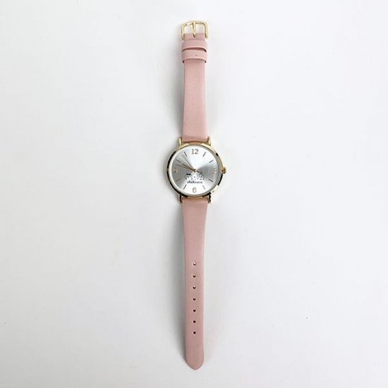 こちらは、分表示がないスッキリとした文字盤ですね♪文字部分のゴールドも少しピンクがかっていて、ベルトとの相性もバッチリ♡