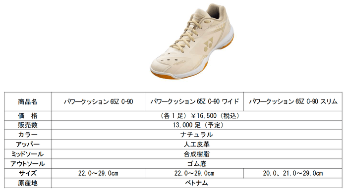 アッパー表面積素材の90%にリサイクル素材を使用したサステナブルモデル バドミントンシューズ「パワークッション65Z C-90」 2023年9月中旬より数量限定発売