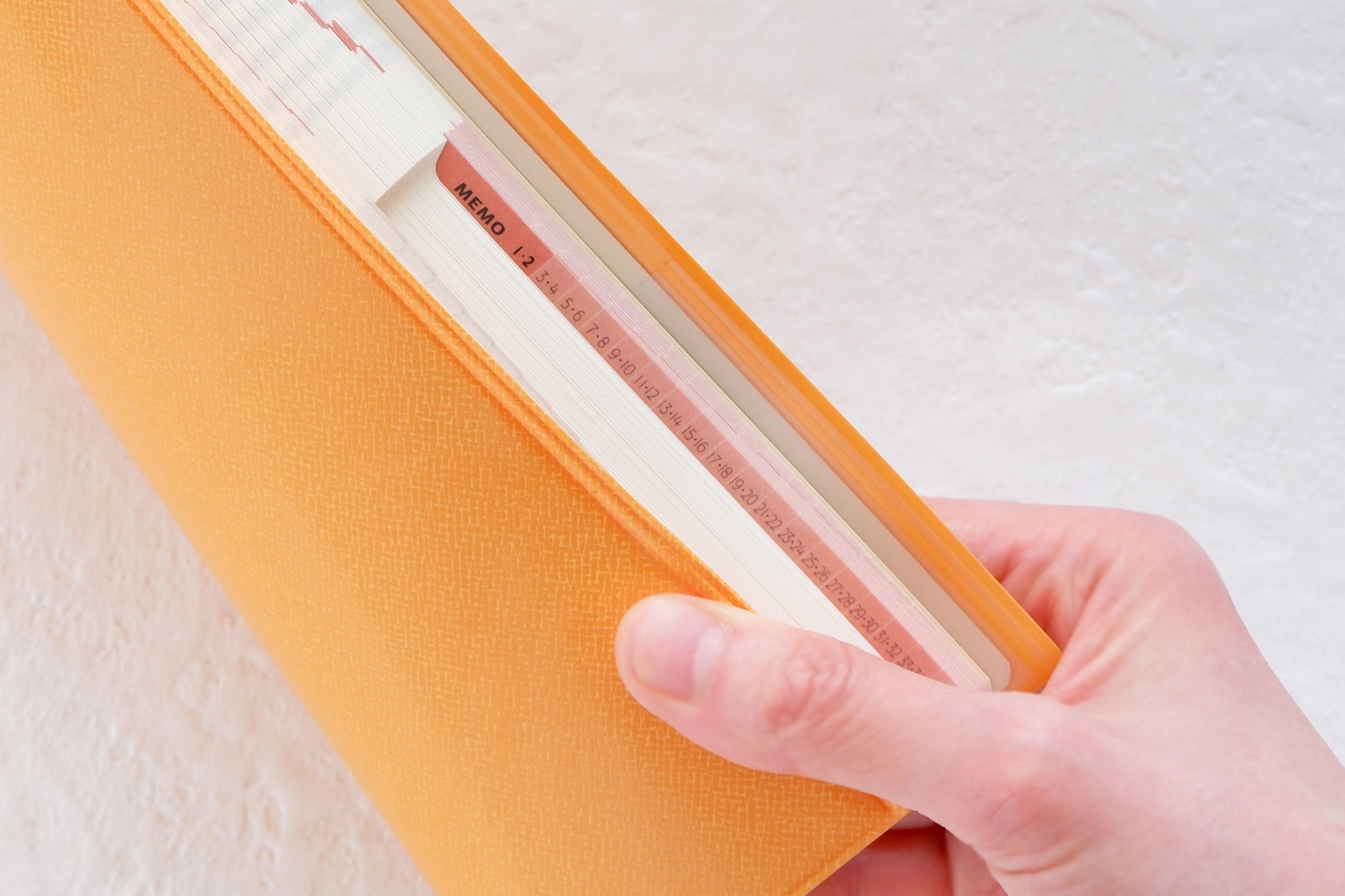 そして、巻末フリーメモページを開く際にも、コーナーミシン目のちぎったくぼみが今週ページへ戻ることを容易にしてくれるため、安心感を持ってフリーメモページを開ききっていただくことが可能です。