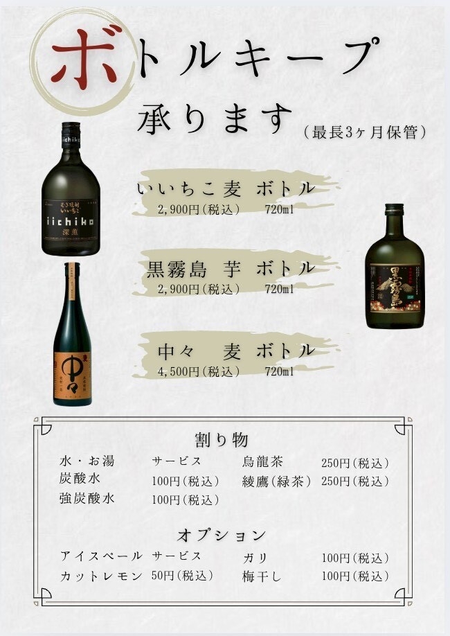 ・サワー(レモン・お茶割 他)……各500円(税込)~