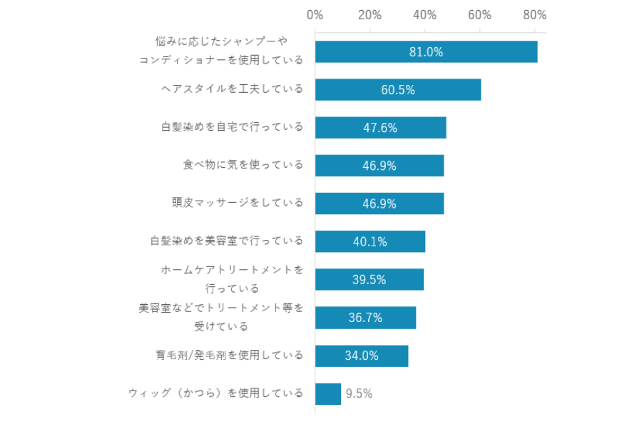 髪に悩みがある日本女性の8割以上が、悩みに応じたシャンプーを使用し、6割以上がヘアスタイルを工夫しているというデータがあります。ヘアサロンでの高額なトリートメントより、日常における“自宅ケア”に投資をする女性が、コロナ禍以降に急増しています。