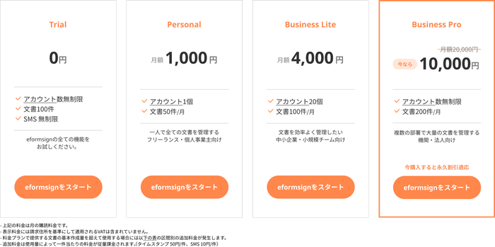 eformsignはサブスク形式で、部署間・フリーランスでも導入しやすい料金体系になっています。