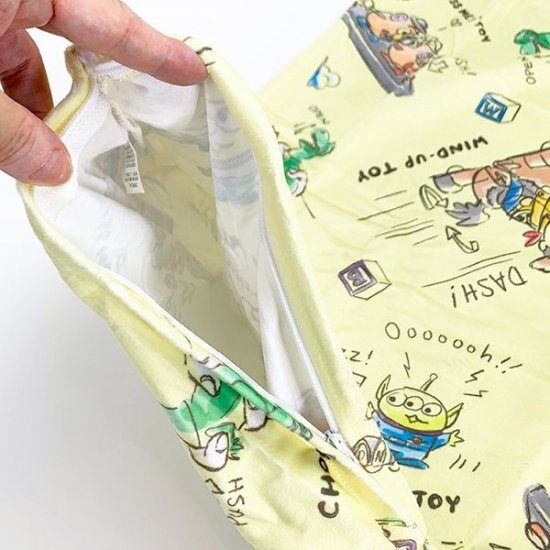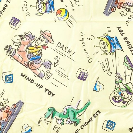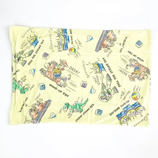 トイストーリーの枕カバーは、まるでおもちゃ箱!ウッディやバズ、レックスにポテトヘッドなどおもちゃたちが楽しそうに遊んでいます♪ピクサーボールが隠れていたりトイストーリーでお馴染みの雲が書いてあったり、見れば見るほど楽しめるんです。