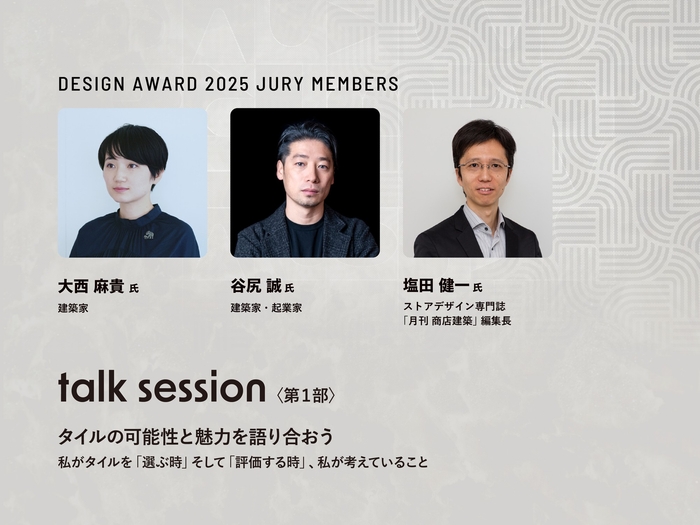 2015年に開始した施工例写真コンテスト「デザインアワード」は、今回で記念すべき第10回を迎えました。皆様に支えられ、歩んできた10年。これまで15,000点以上もの素敵な作品との出会いがありました。節目となる第10回では、歴代受賞作品の施工例写真と実際の使用タイルを展示し、これまでの軌道を振り返る受賞作品展を開催します。さらに、31日には「デザインアワード2025」の表彰式と、審査員によるトークセッションも開催し、これからの空間づくりに活かせるヒントやインスピレーションをお届けします。これまでの10年と、これからの10年へ。タイルの可能性を信じ、共に歩んでくださったすべての方に感謝を込めて。ぜひ会場で、その軌跡と未来を体感してください。