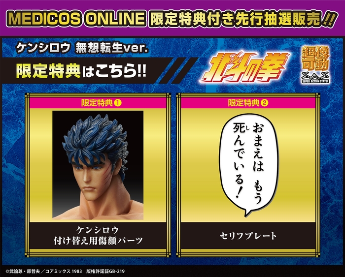 ※後日、限定特典が付属していない超像可動「ケンシロウ 無想転生ver.」を一般販売させていただく予定です。
