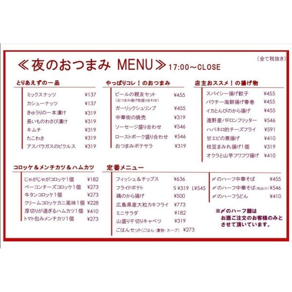 アルコールメニューはもちろんのこと、新しくなったおつまみメニューも必見です!