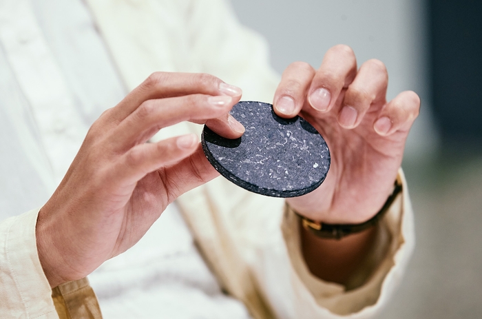 そして今回、店舗スタッフが着用した700着の制服をPANECO®の技術によって約8000~9000個のコースターにアップサイクルするプロジェクトが実現した。