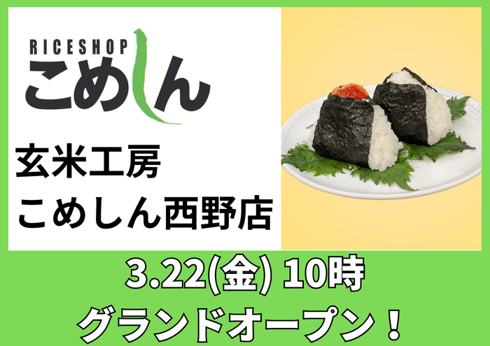 この度、より多くのお客様に美味しくて健康に貢献できるお米やおむすび等の商品を提供することを目的として、2024年3月22日(金)に札幌市西区西野に札幌3号店となる「玄米工房 こめしん西野店」をオープンいたします。