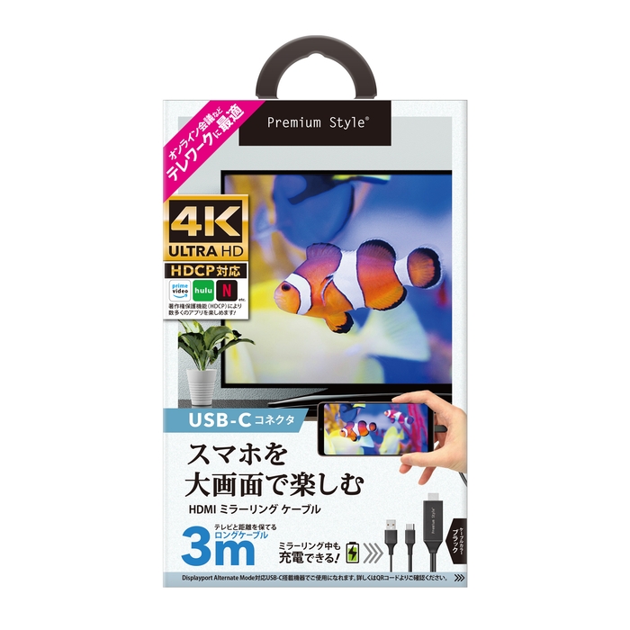 スマートフォンやデジタルオーディオ端末等のアクセサリーブランド『Premium Style』の企画・製造・販売を手掛ける株式会社PGA (本社:神奈川県横浜市都筑区、代表取締役:黒木 光) は、このたびUSB-Cコネクタ HDMIミラーリングケーブル 2m ブラック とUSB-Cコネクタ HDMIミラーリングケーブル 3m ブラックを2021年6月30日より発売販売を開始いたします。