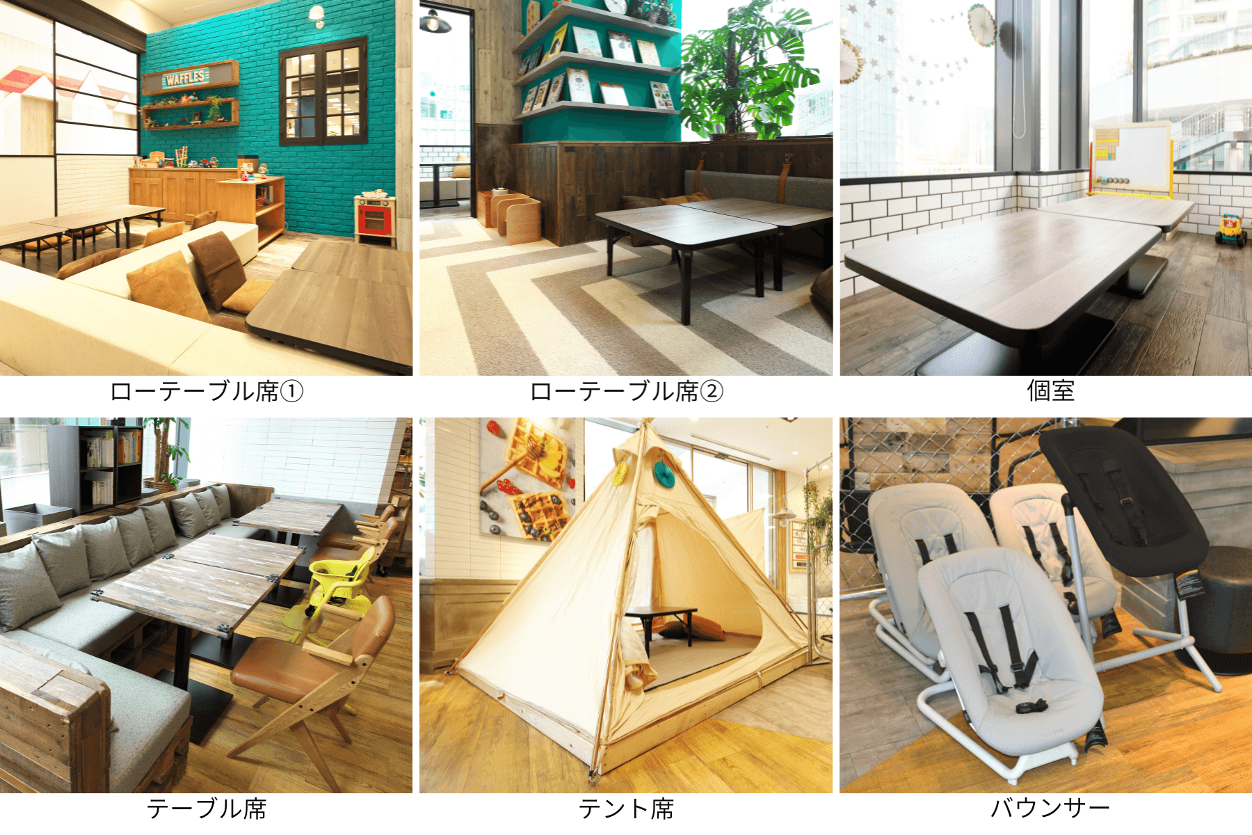 おもちゃ・絵本を取り揃え、ベビーチェアやバウンサー、靴を脱いで過ごせるローテーブル席をご用意し、お子さまとの時間を楽しめる空間づくりにこだわりました。