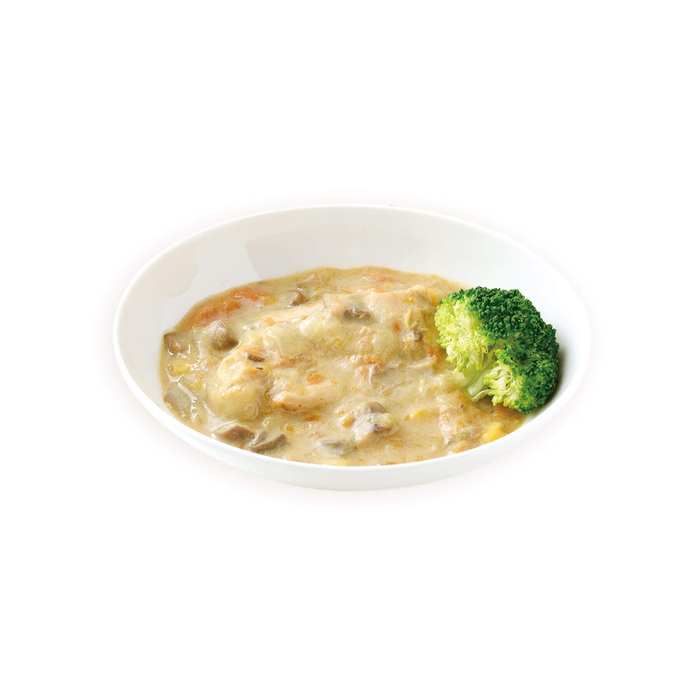 鶏肉と野菜を和風の豆乳クリームソースでフレンチ仕立てのフリカッセ(クリーム煮)風に仕上げました。あっさりしながらもコクがあるソースは、ごはんとの相性◎