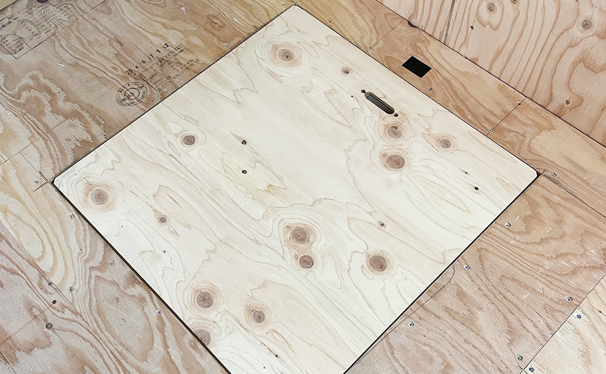 床仕上げ面に「点検口のフチ」という余計な存在を消した上で、必要時にはしっかり点検できる開口が必要であり、加えて、住宅に必要な気密性や歩行感を損ねない耐荷重性能の確保も重要です。