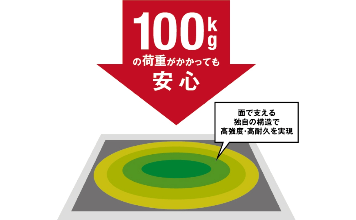 既存のJoto製高気密型床下点検口と同様、100kgの荷重がかかっても、たわみはわずか3mm以下。生活動線上に取り付けても、歩行時に不快感がありません。