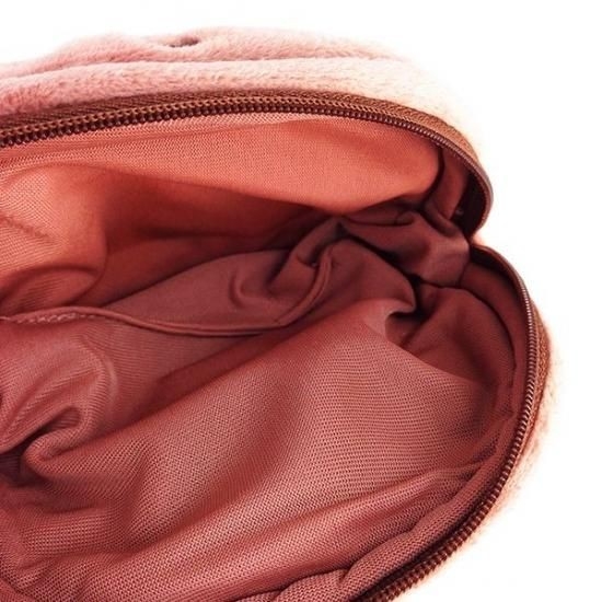 顔の部分はポーチになっており、アクセサリーや小物を収納しておくと便利です。ふわふわな肌触りも魅力です。