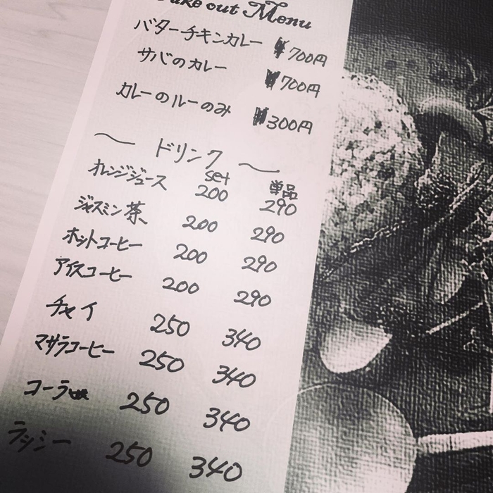 メニューは日替わり(週替わり)で創作カレーを提供致します。ポークビンダルと、サグパニールなどもラインナップに入る計画です。