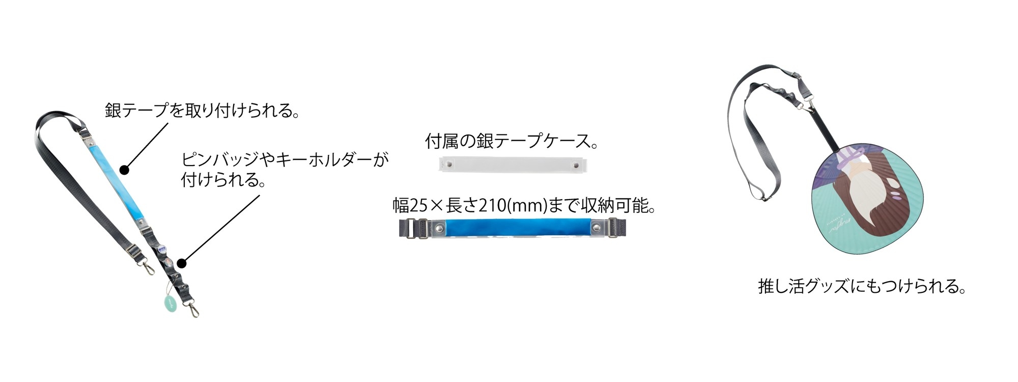 銀テープやピンバッジを付けてオリジナルのショルダーベルトが作れます。