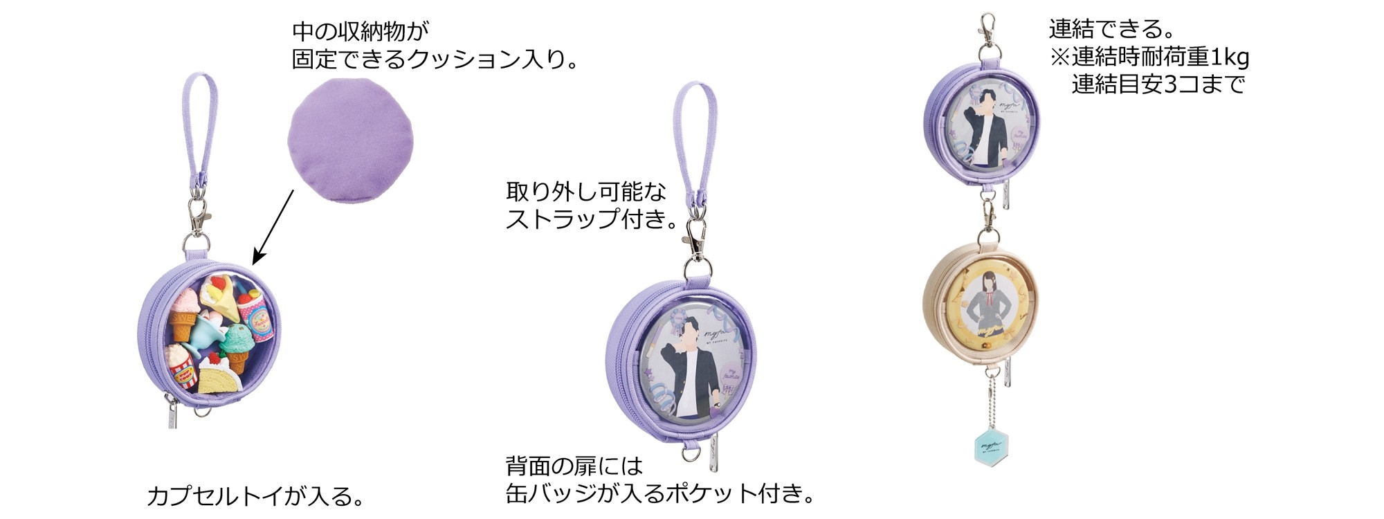 カプセルトイを詰める「ガチャ詰めポーチ」として使用できるコンパクトなサイズのポーチです。