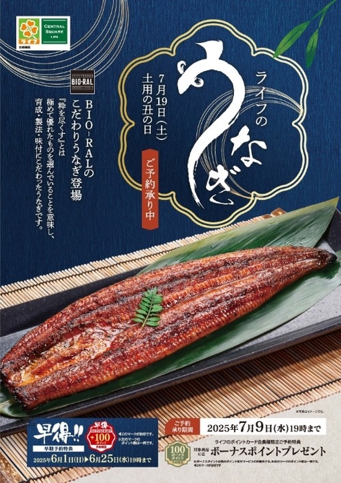 “おいしい” “ワクワク” “ハッピー” をお届けするライフコーポレーションは、7月19日(土)の土用の丑の日(一の丑)に向け、こだわりのうなぎ商品の予約販売を受付中です。首都圏では鹿児島のミネラル豊富な地下水を使い無投薬で育てた「BIO-RAL 鹿児島県産【無投薬】粋を尽くしたうなぎ長焼」など8種類、近畿圏では大阪府堺市の老舗うなぎ店「五郎藤」の一尾一尾丁寧に手焼きした「愛知産 五郎藤 当日焼き上げ!手焼きうなぎ蒲焼」など11種類を販売しております。事前にご予約いただくことで食品ロスを減らし、ライフとともに持続可能な社会の実現に取り組みませんか?全商品にボーナスポイントが付与されるお得な予約販売は、店頭設置のパンフレットをご確認のうえ、 サービスカウンターにてご予約ください 。