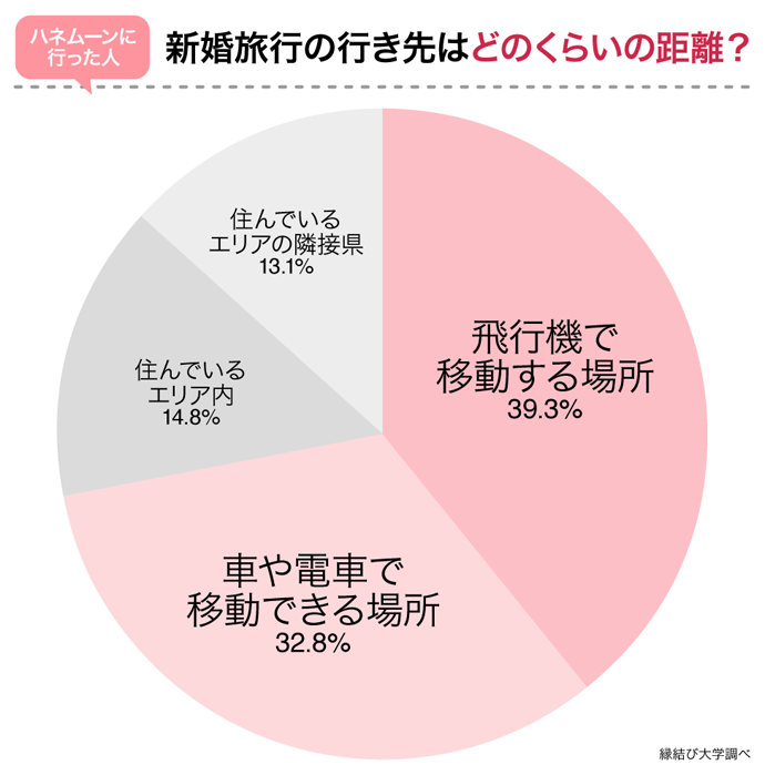 新婚旅行の行き先として、4割弱の人が居住地からかなり離れた場所まで出かけたことが分かりました。