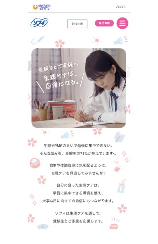受験生によりそう 「ソフィ #生理ケアは応援になる」プロジェクト開始 ~生理ケアで受験に臨む女性を応援する~