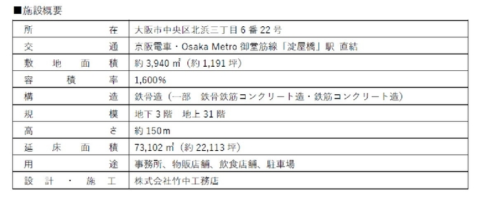 本事業は、中央日本土地建物株式会社が所有する「日土地淀屋橋ビル」と京阪ホールディングス株式会社が所有する「京阪御堂筋ビル」を共同で建て替え、エリア最高となる高さ約 150mのランドマークビルを開発したものです。オープンイノベーション施設を備えたオフィスゾーンや、商業ゾーン、婚礼等多目的に使えるイベントスペースなどからなる複合施設で、2024年8月5日に本事業の施設名称を「淀屋橋ステーションワン」に決定し、2025年6月23日に開業しました 。