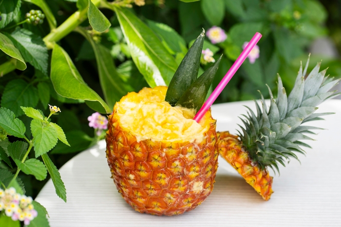 パイン農家が作るパインスムージー。容器にはパインまるごと使用。