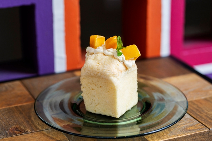 沖縄県産のマンゴーを上にも横にもゴロッと大胆にトッピング。