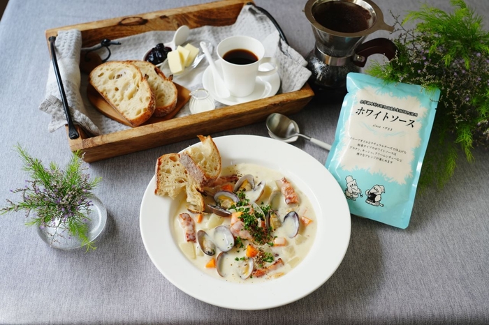 日本で初めて商品化された粉末のホワイトソースは進化を続けています。オリーブオイルとオランダ産エダムチーズを使用してコクのある味を作り上げました。クリームシチューのほか、グラタン、キッシュ、クリームコロッケなど様々な料理にアレンジしていただけます。国産小麦100%使用、化学調味料不使用です。
