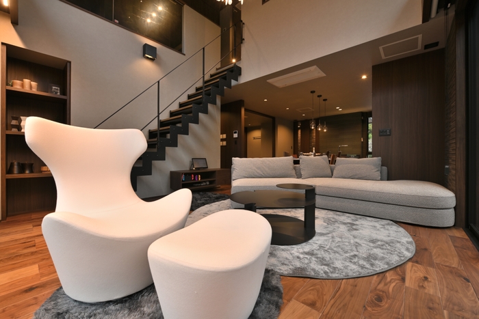 ■ 吹き抜けと大きな窓で開放感のあるリビング