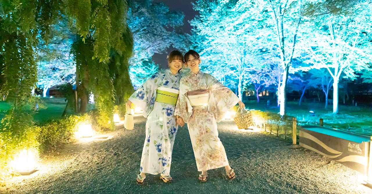 翌日返却や宅配返却プランを利用すること夜も着物を着たまま散策することができます。時間に追われることがないので、ゆったりとした時間を過ごすことができます。