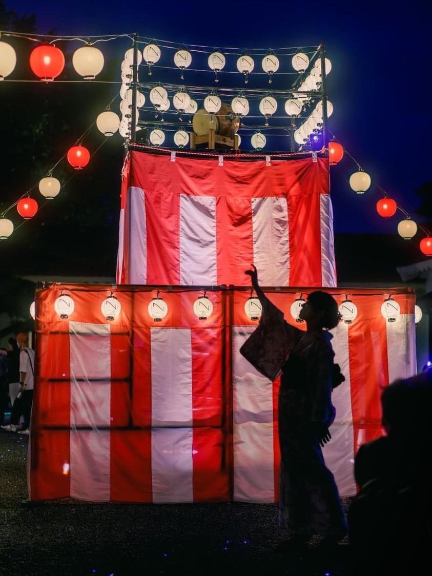 高さ訳4mのおまつり櫓を取り囲んで盆踊りを楽しむ事が出来ます。