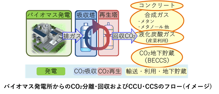 バイオマス発電施設における省エネルギー型CO2分離回収に関する調査を行います