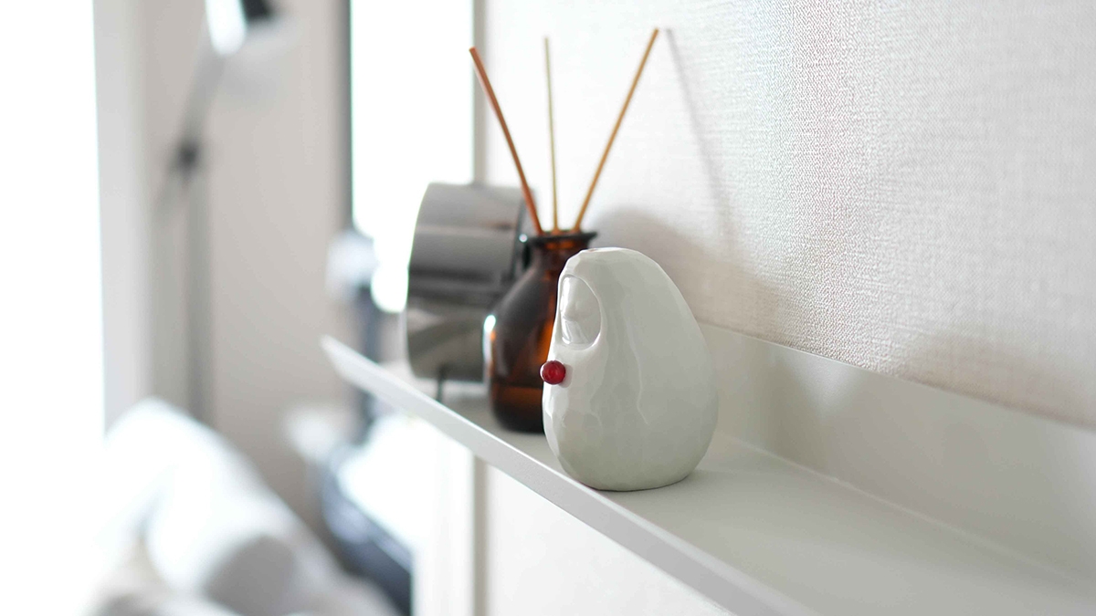 サイズは手のひらに収まるコンパクトさで、デスクやリビングの棚、寝室のサイドテーブルなど、さまざまな場所に置きやすい設計となっています。