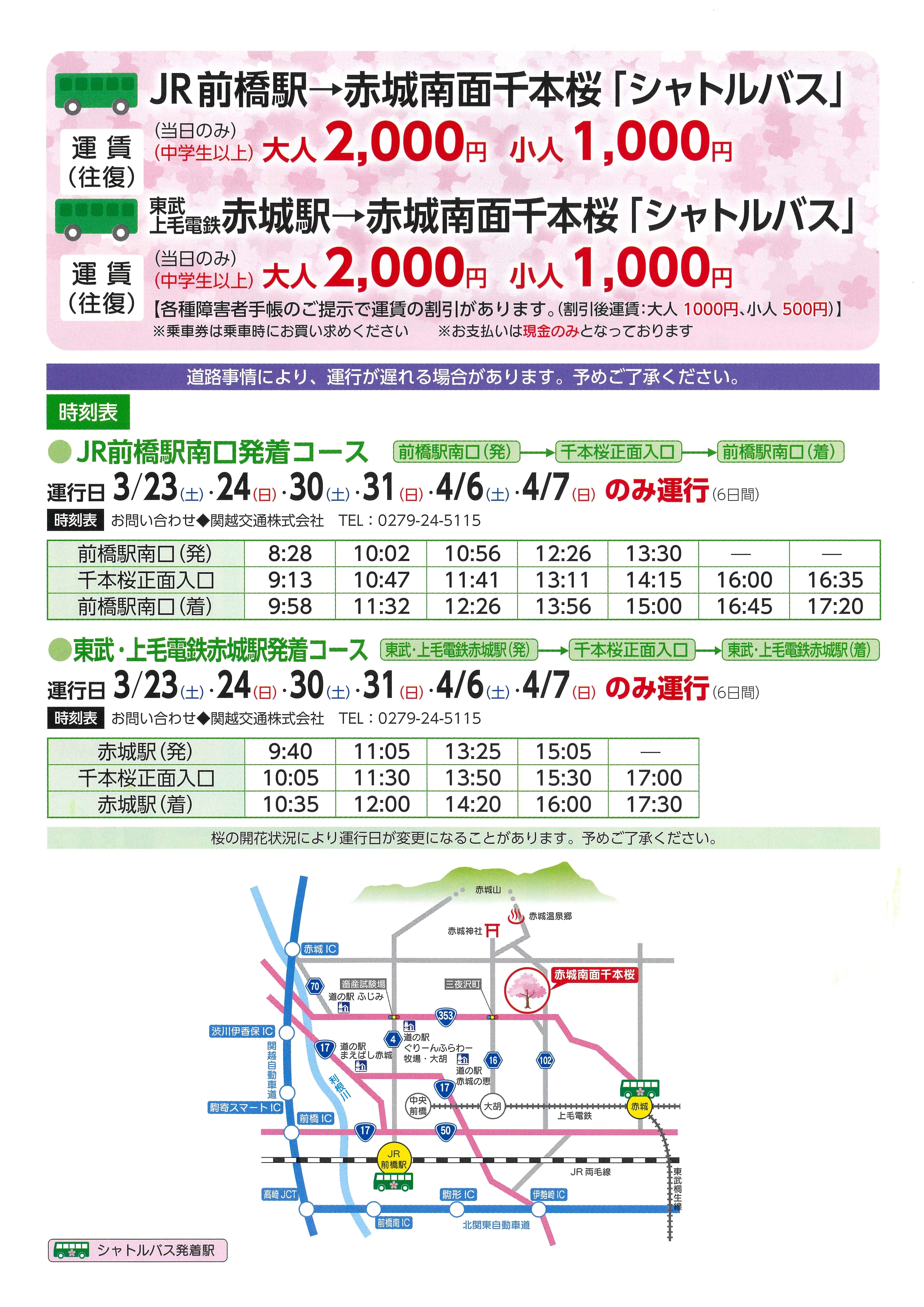②東武・ 上毛電鉄赤城駅 ⇔ 千本桜
