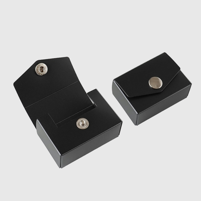 フラップ(フタ)が大きく開き細かい物の出し入れがしやすい設計で小物の整理に役立ちます。手のひらに収まるほど小さなケースですが、全体の大きさとボタンのバランスを考えシンプルに仕上げた事で散らかりがちな小物をすっきり見せる工夫をしています。