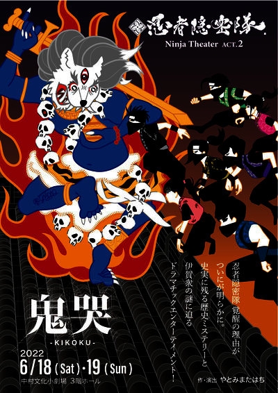 合同会社ジパング舎(三重県桑名市)主催、忍者隠密隊 Ninja Theater Act.2『鬼哭』が2022年6月18日 (土) ~2022年6月19日 (日)に名古屋市中村文化小劇場(愛知県名古屋市)にて上演されます。チケットはカンフェティ(運営:ロングランプランニング株式会社、東京都新宿区、代表取締役:榑松 大剛)にて発売中です。