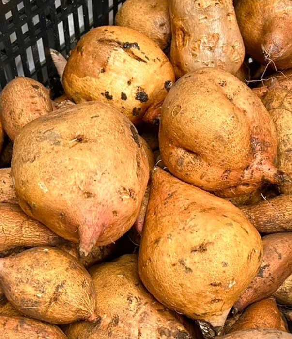 形は丸みを帯びていて皮は黄土色、焼き芋生地にすると珍しい緑色になり、食感はなめらかで風味豊か、独特の上品な香りがします。今までに味わったことのない芋の味で食物繊維が豊富、粘りがあります。戦前、燃料用アルコール調達や食料にするため全国で栽培されていた高系4号芋は国を衛る芋、護国芋とも呼ばれていました。数年前、香美市物部町神池地区で細々と作られ続けられていたことがわかりました。現在、地元の方々が高系4号芋(神池芋)を地域活性に繋げようと様々な取り組みをされています。ワンデースイーツラボも賛同し、高系4号芋(神池芋)を使用したスイーツを開発いたしました。