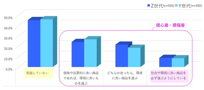 というサステナブル無関心・消極層も積極層とほぼ同レベルで存在していることもわかった。