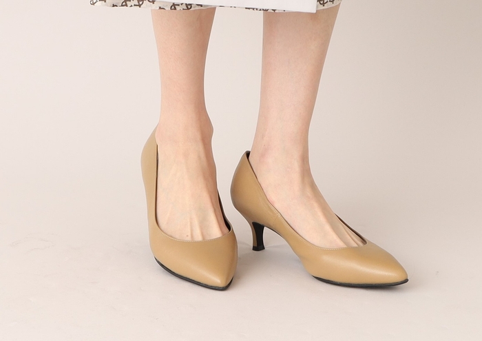 シャープすぎない程よいカーブのトゥ先は、これまでのコンフォートパンプスのデザインを踏襲。やさしい履き心地をサポートしてくれる、浅すぎず、深すぎないトップライン(履き口)や、華奢で美しいシルエットながら安定した歩行が叶う5㎝高のフレンチヒールなど、デイリーユースで活躍してくれる万能パンプスです。