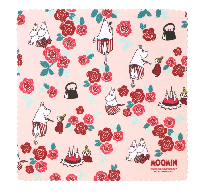大切にムーミンやリトルミイ、ムーミンママが肌身離さず持ち歩く黒いハンドバッグなどのモチーフを印刷したメガネ拭き。