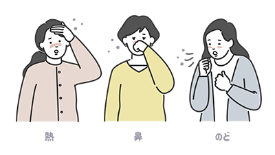 体調不良でなにかしらの症状がある方、新型コロナウイルス感染症の検査で陽性となった方、同居する家族に陽性となった方がいる方は、周囲の方に感染を広げないために、外出を控えてください。