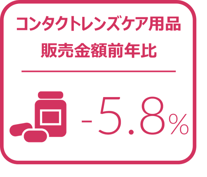 2024年第1四半期(1‐3月)のコンタクトレンズケア用品の販売は、金額前年比5.8%減とマイナスで推移した。店頭では11.6%減、インターネットは0.3%増となり、インターネットが減少からプラスに転じた。