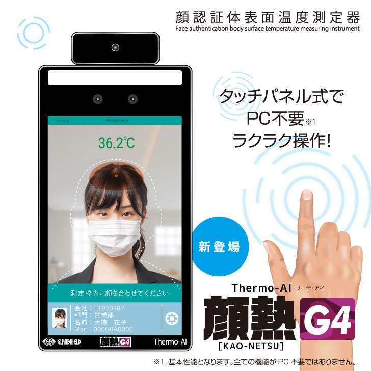 タッチパネル操作で簡単に設定可能。 顔認証体表面温度測定器「サーモ・アイ 顔熱G4」が 4月1日販売開始
