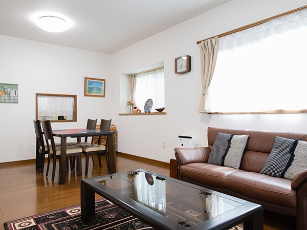 1階は広々12帖リビングダイニングとそこに続く和室は日当たりが良く明るいのでとても開放的。