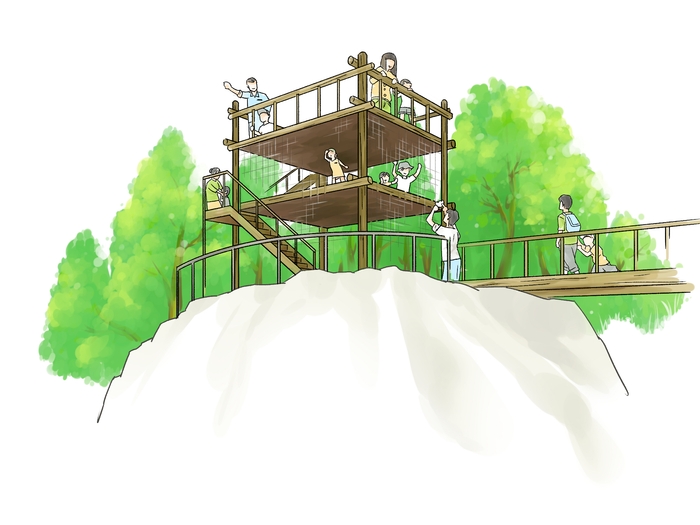 2021年4月リニューアルエリア。崖の上のブランコ、まるでむささびが住んでいるかのようなハウス、わくわく大冒険の森内で最も高い展望台など、スリル満点の新エレメントが多数登場!