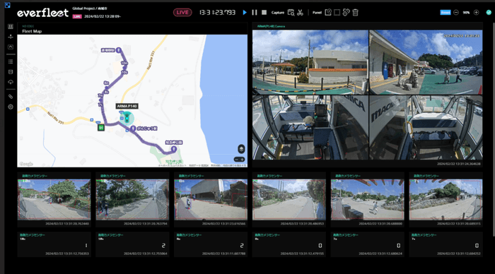 自動運転EVバスの走行情報は、マクニカ製遠隔監視システム「everfleet*3」に連携させ、自動運転EVバスのリアルタイムな運行状況を離れた場所から監視・管理します。