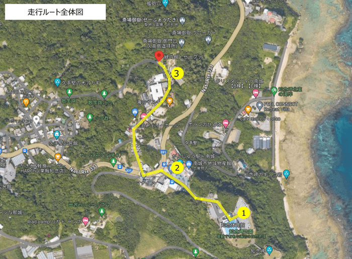 ■走行ルート : 知念岬公園と斎場御嶽を往復するルート