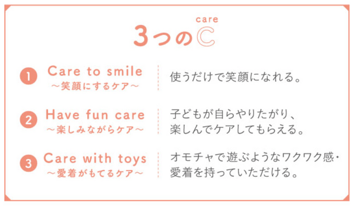 子どもが自らやりたがり、楽しんでケアしてもらえる