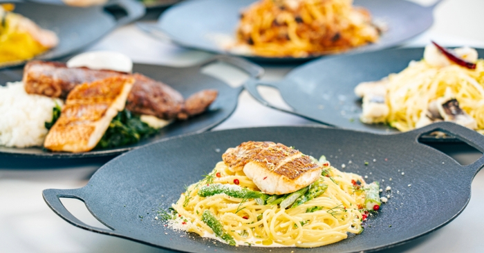 1階のシーフードダイナーでは、これから旬を迎える淡路島産“名残鱧”を使用した『名残鱧のアーリオオーリオ』が登場。初夏に味わえるあっさりとした風味に比べて、冬に向けてより脂がのった濃厚な旨味が特徴になる鱧を、ガーリックオイルでシンプルに仕上げた一品です。また、噛むほどに甘みが広がる淡路島産の“紅葉鯛”と、酸味が少なく、甘みが特徴の淡路島産“マイヤーレモン”を合わせた『紅葉鯛の淡路産レモンクリーム』を含む4種のパスタが新登場。淡路麺業が誇る極上のもちもちとした食感の生パスタと共にお楽しみいただけます。